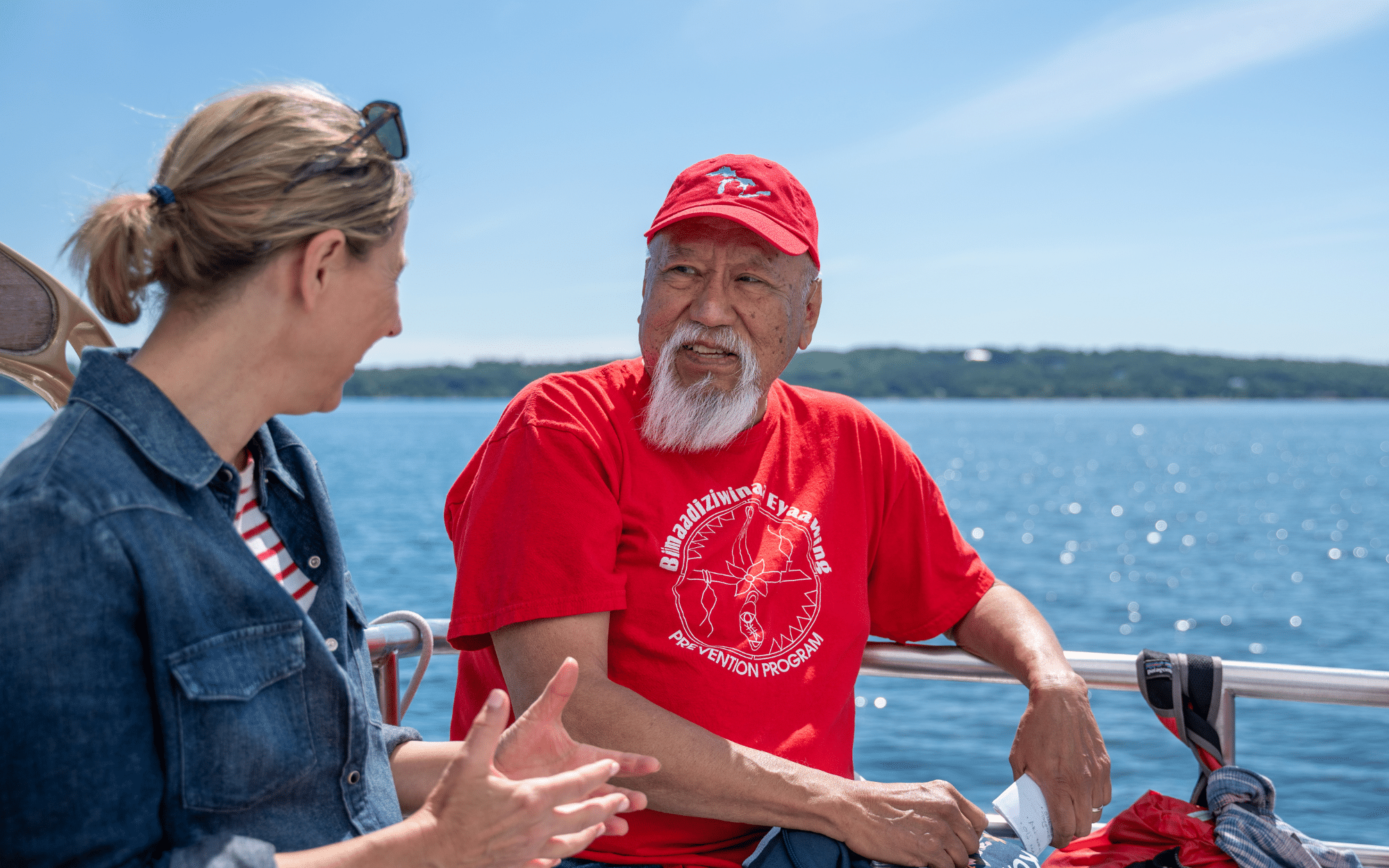 While on the boat, I had the chance to meet with Anishinaabe elder Tom Binesiwegiizhig (Peters) to learn more about the people on whose land Traverse City exists. According to oral history, they go back to the Eastern Coast of Turtle Island. They moved west under the guidance of their spiritual leaders and stopped when they found wild rice growing on the water. A group of 5 Anishinaabeg bands signed the Treaty of Washington in 1836, ceding nearly 14 million acres of their land to the United  States.