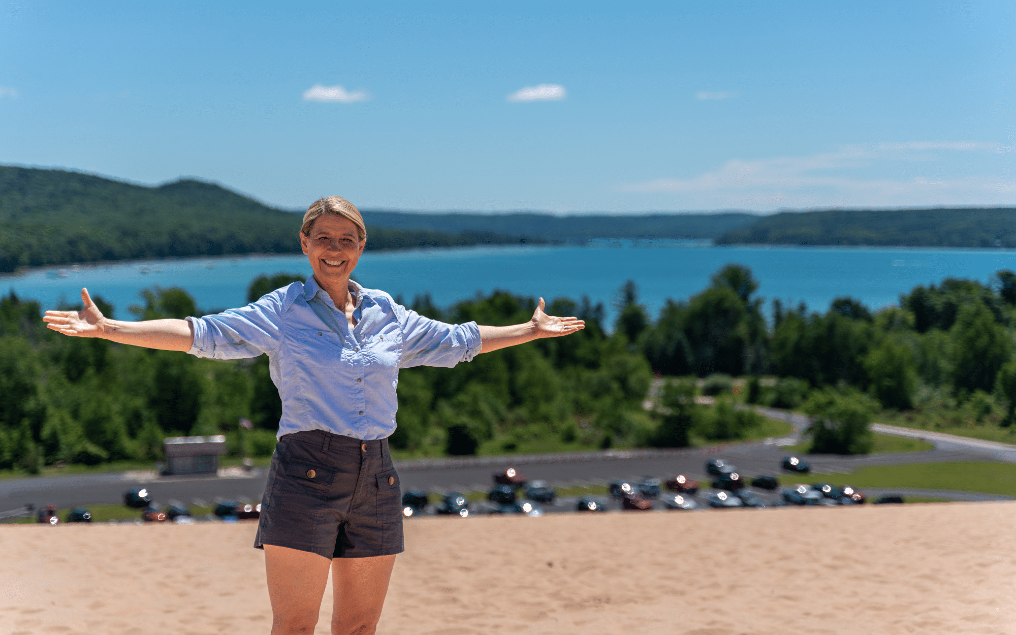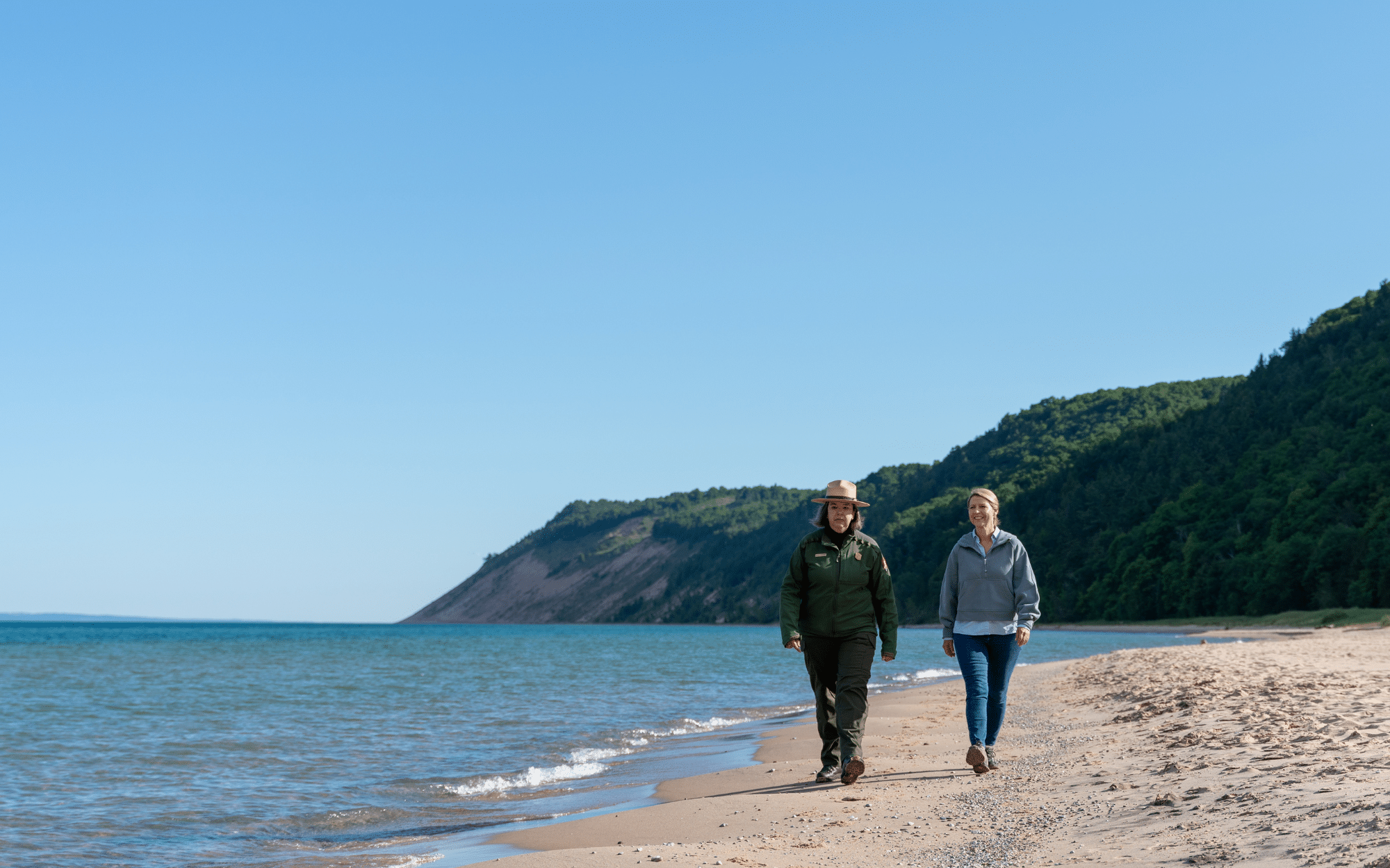 Whatever preconceived notions you have when I say the word “lake,” I want you to forget all about them when it comes to Lake Michigan. The third largest of the five Great Lakes, it’s 321 miles long, 118 miles wide, and is truly like no other body of water you’ll visit! Stretching along the lake in Michigan’s northwestern Lower Peninsula is one of three US national lakeshores – Sleeping Bear Dunes. I met up with park ranger Merrith Baughman to learn about the kind of people (and creatures) who have made their way through these dunes through both history and today.