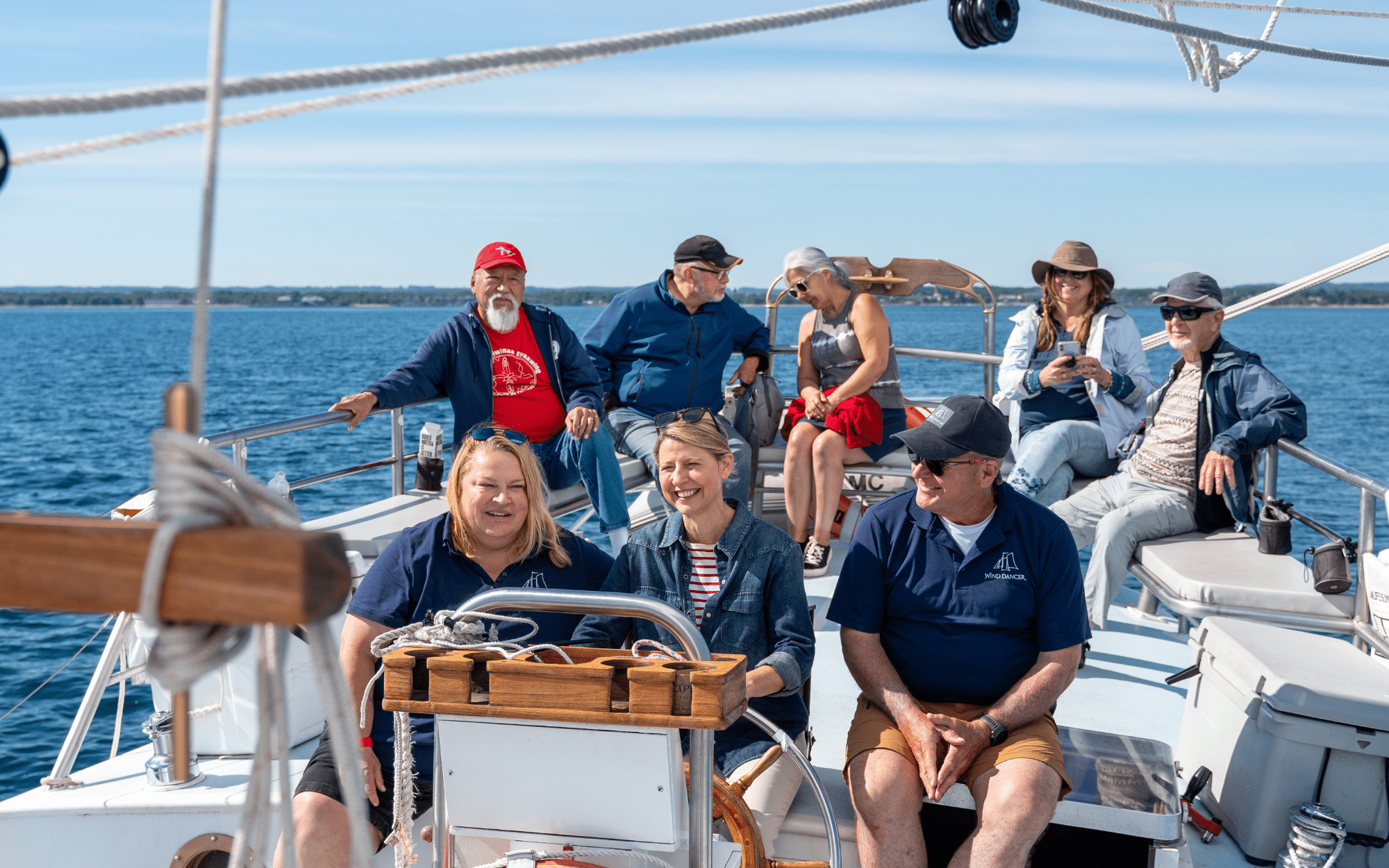 With all this talk about Lake Michigan, I finally had to get on it for myself! I boarded the Wind Dancer Tall Boat with owner Tawny Hammond to enjoy the wide-open waters. The 63-foot-long schooner is big enough that it has a galley, a salon, a sleeping berth, and a head (bathroom). Tawny grew up on Lake Michigan. Since both her grandfathers loved boats, she grew up around boat building and has always wanted to preserve the schooner’s history in Michigan.